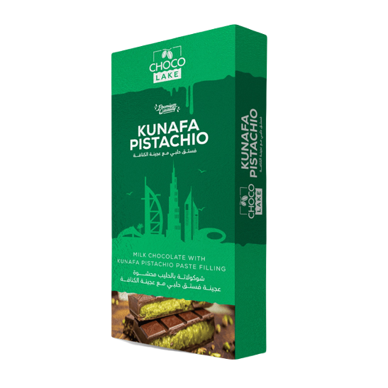 Be the first to review “MILK CHOCOLATE WITH KUNAFA PISTACHIO PASTE FILLING 190G – شوكولاتة بالحليب محشوة عجينة فستق حلبي مع عجينة الكنافة”